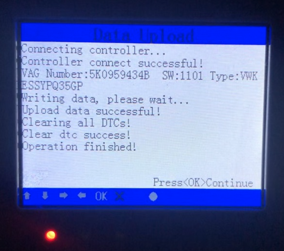 When installing this as a used part, the fault code „65826 - no basic adaption (B2010 00 009)“ will be stored. This basically means that the ECU detected by the VIN that it has been installed in another car and therefor needs to be newly learned (for more info see Audi SSP 294). It can easily be done with the handheld tool „xHorse iScanCar MM-007“: