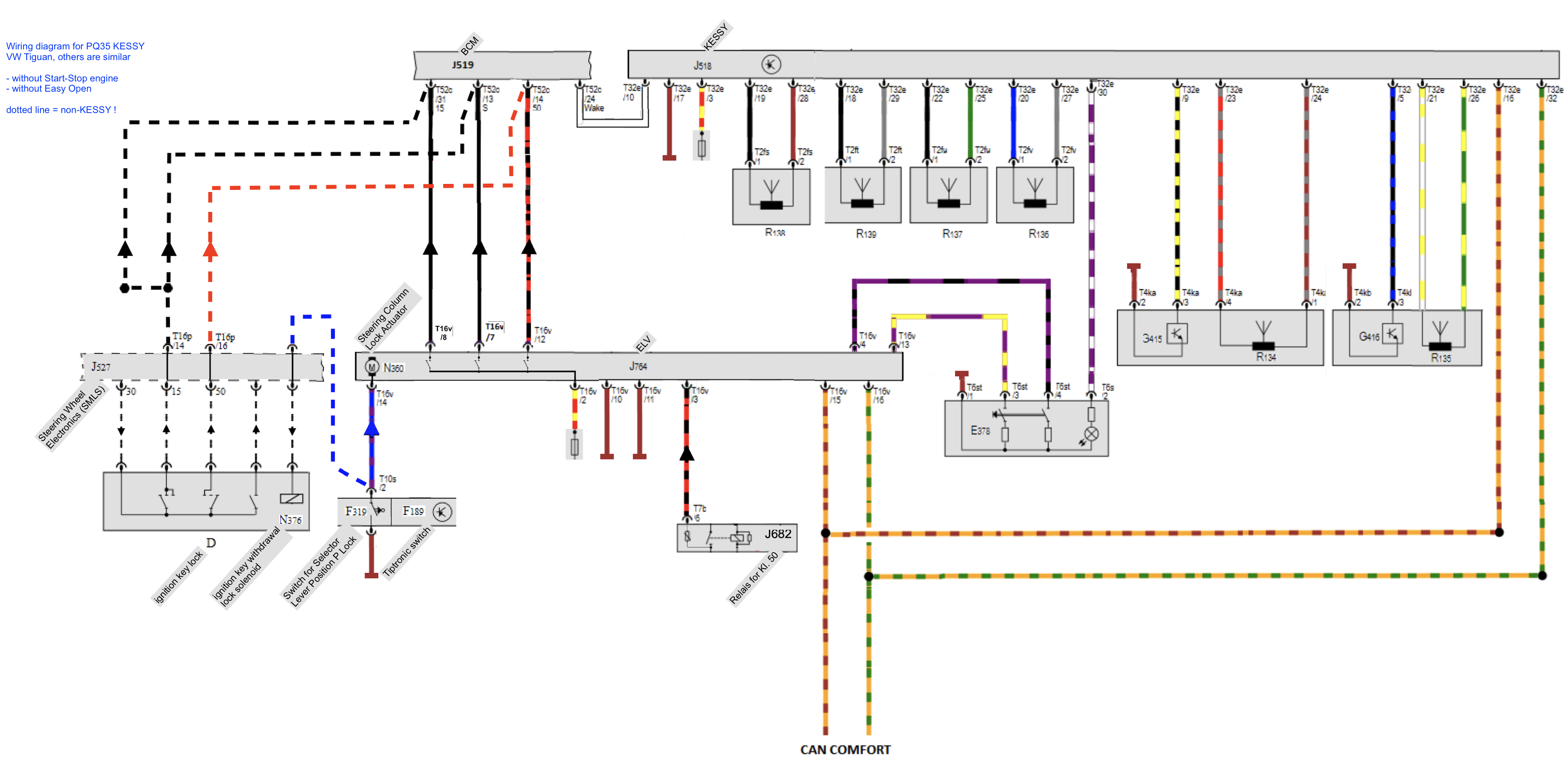 This wiring diagram shows only those parts that are useful to understand the KESSY system and/or are required to be installed/changed in order to retrofit KESSY. Pasted Graphic 18